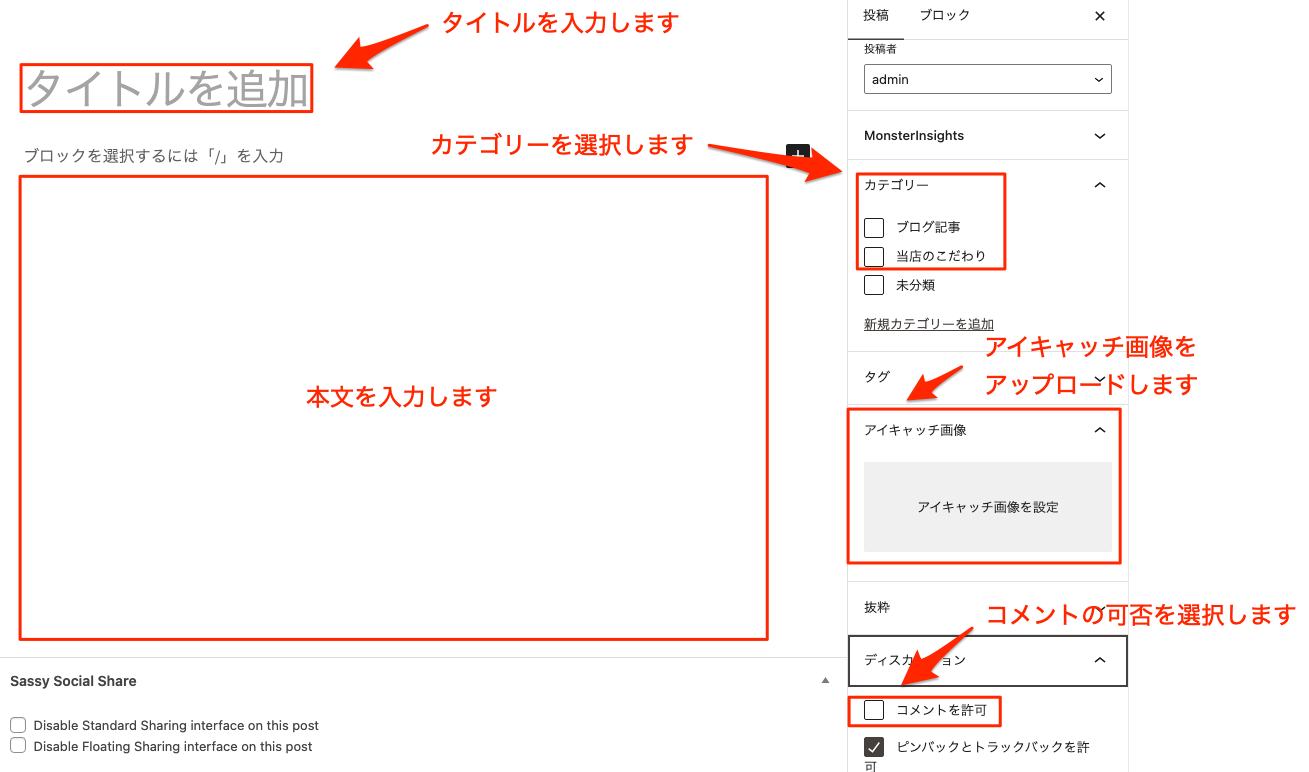 この投稿に対するお客様のコメントを許可する場合は「コメントを許可」にチェックを入れます。