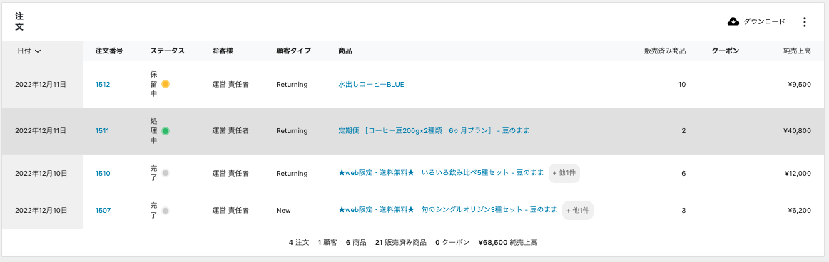 - オプション(豆のまま、挽き売り)毎の販売傾向